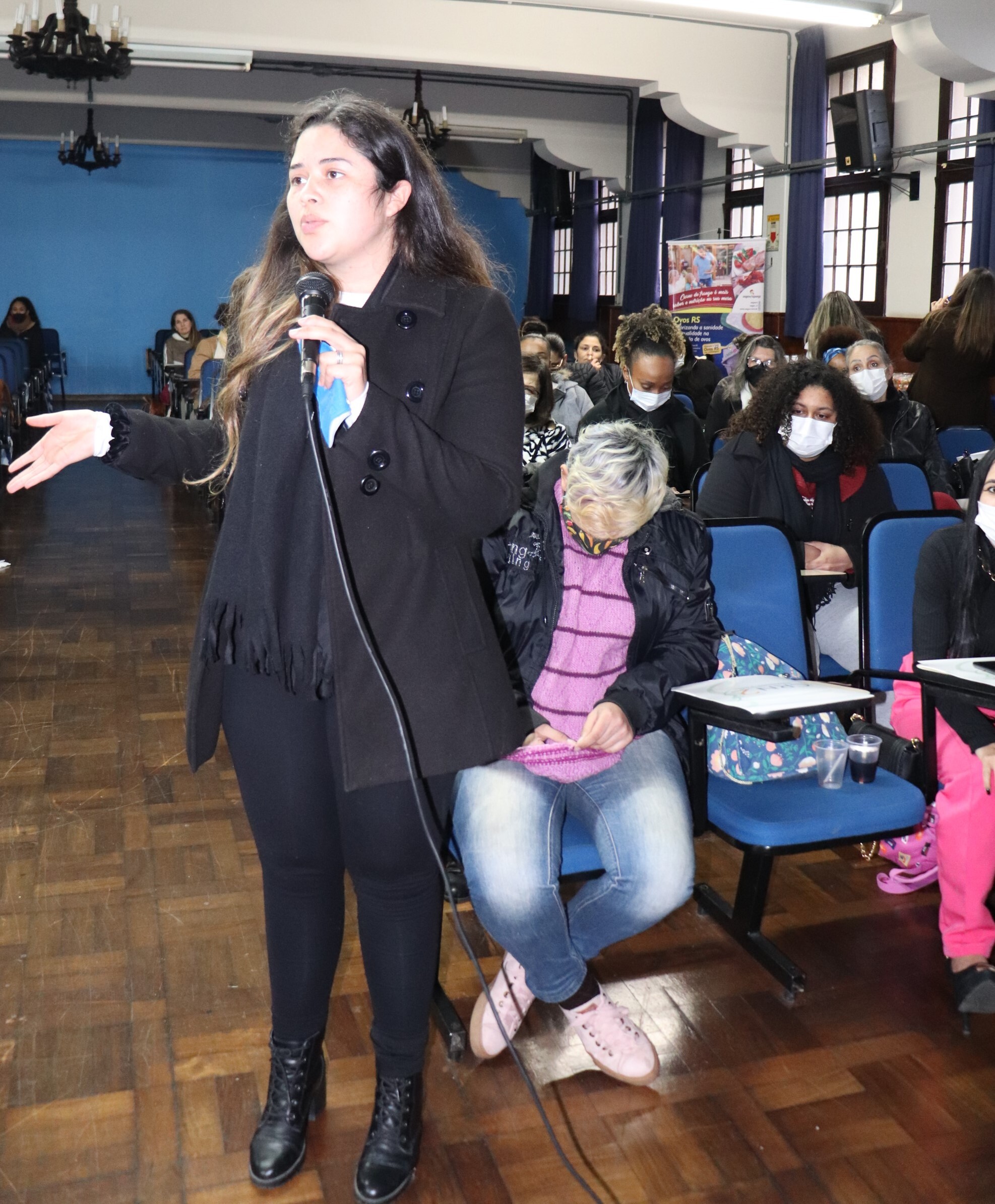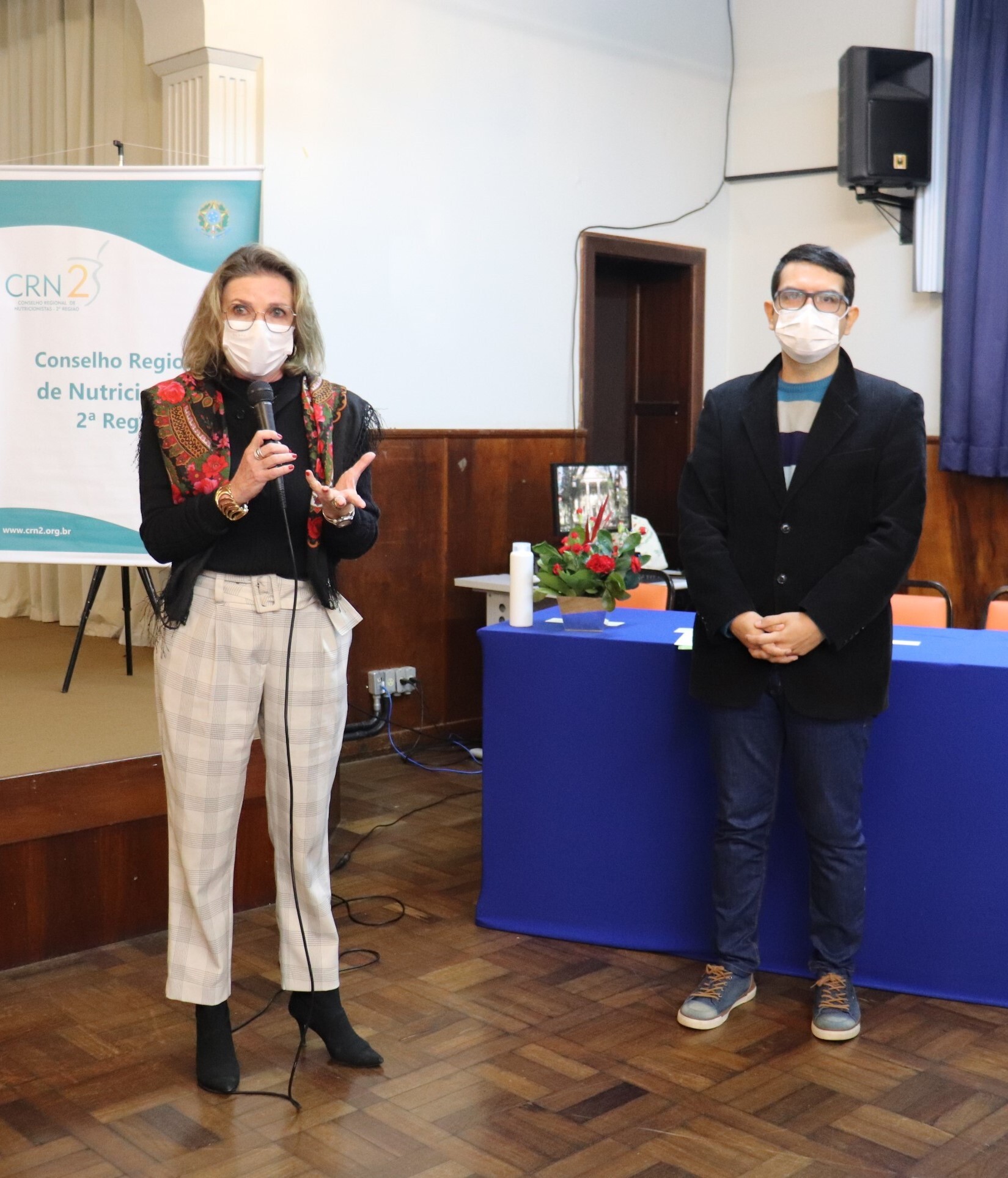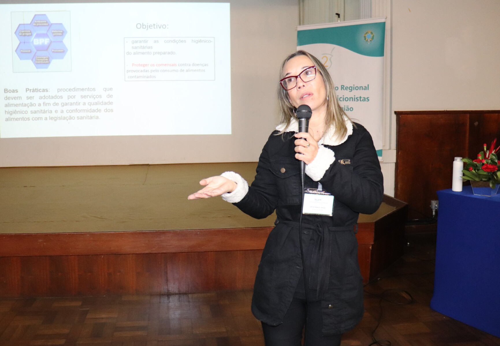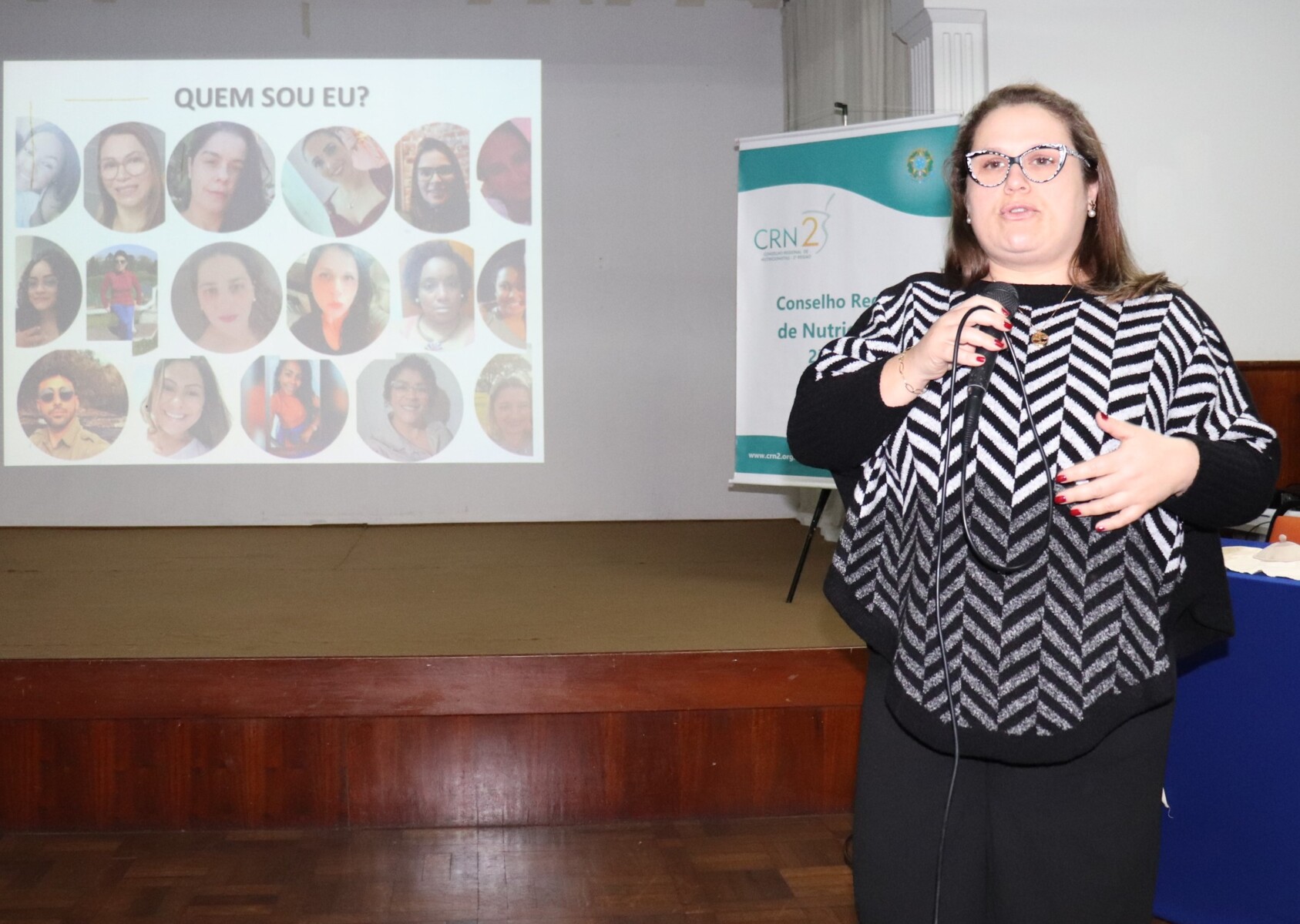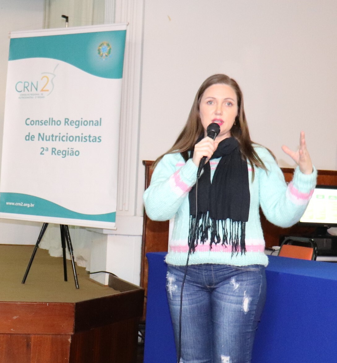 A conselheira Ana Luíza, vice-presidente do CRN-2, foi a mestre de cerimonia do seminário