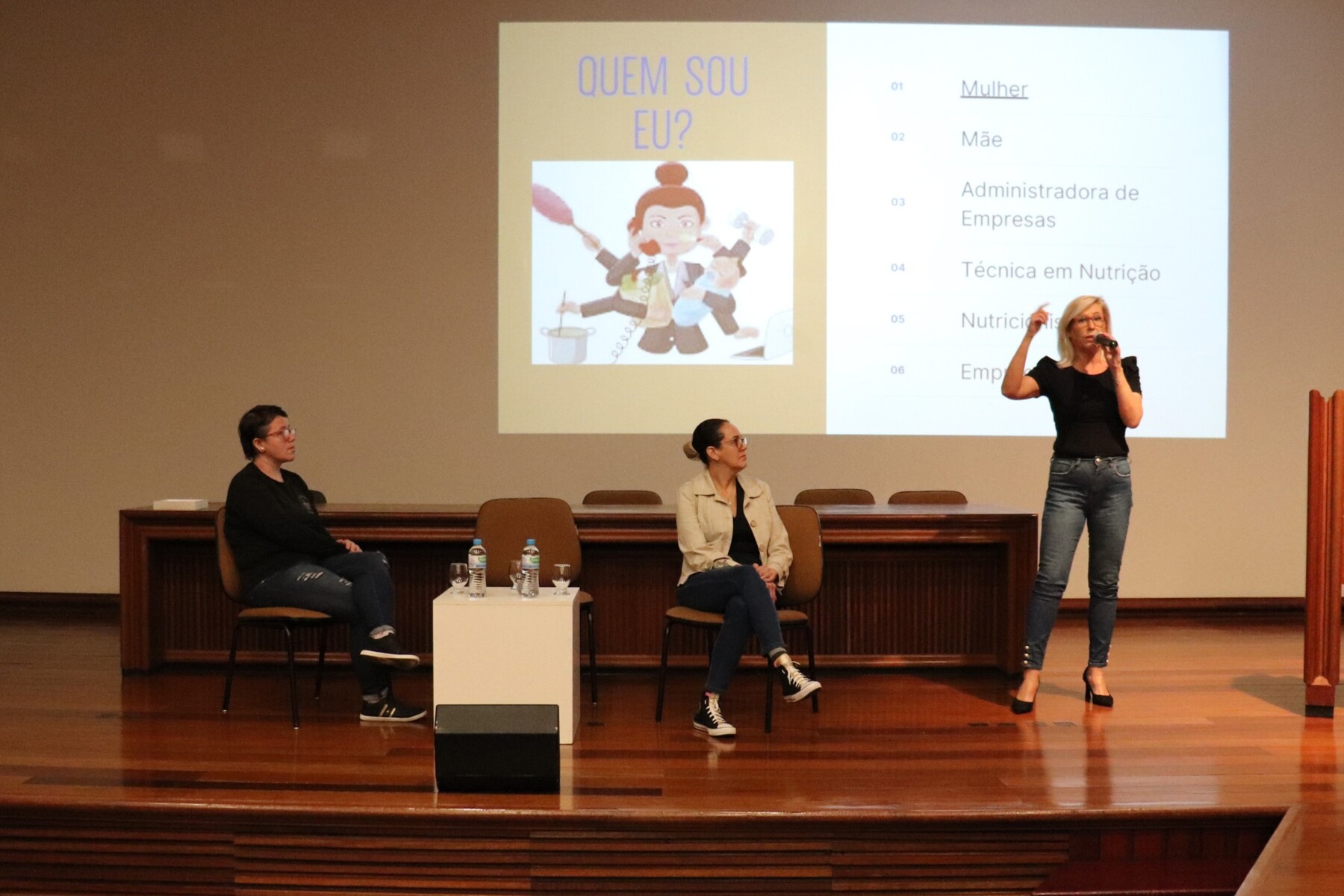 Na sequência, formou-se um painel que iniciou com a fala da nutricionista e técnica em nutrição e dietética, Juliana Varnier. Ela narrou sua experiência de vida pessoal e profissional, com sólida base no empreendedorismo. A palestrante apresentou a todos o que ela realmente vê no mundo do empreendedorismo, seus benefícios e seus desafios. Por fim, ela destacou o papel do curso técnico em sua vida. Segundo Juliana, ser técnica em nutrição e dietética foi fundamental para poder trilhar um caminho novo e que a realiza de profissional e pessoalmente. Com