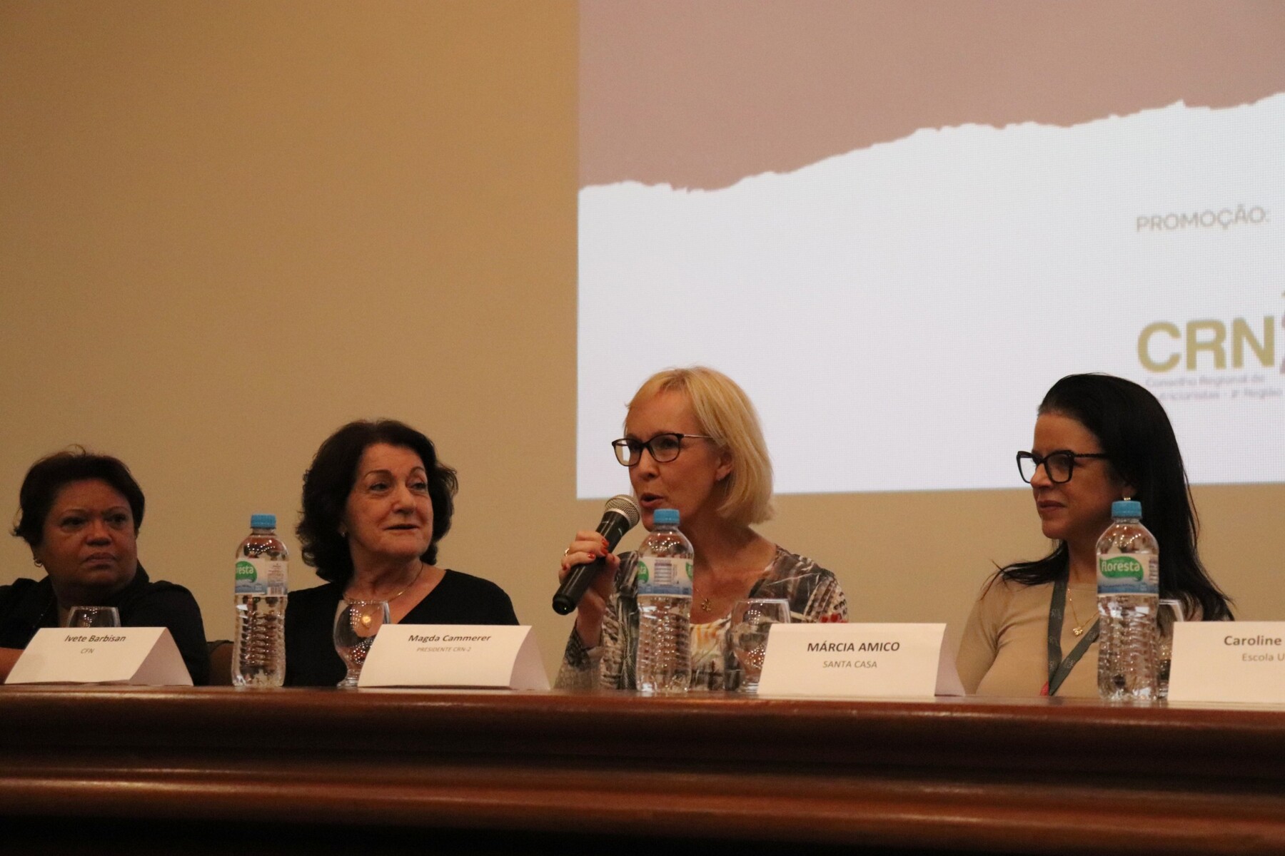 Cerca de 200 pessoas estiveram presentes no evento que marcou a celebração do Dia do Técnico em Nutrição e Dietética (27/06). O seminário, que aconteceu no Anfiteatro Hugo Gerdau, da Santa Casa de Misericórdia de Porto Alegre, teve como temas a comunicação não-violenta e o empreendedorismo. O público recebeu com muito carinho as palestrantes nutricionista Liana Klagenberg; nutricionista e técnica em nutrição e dietética, Juliana Varnier; e as técnicas em nutrição e dietética Roberta da Silva e Rosa Marta Moura.