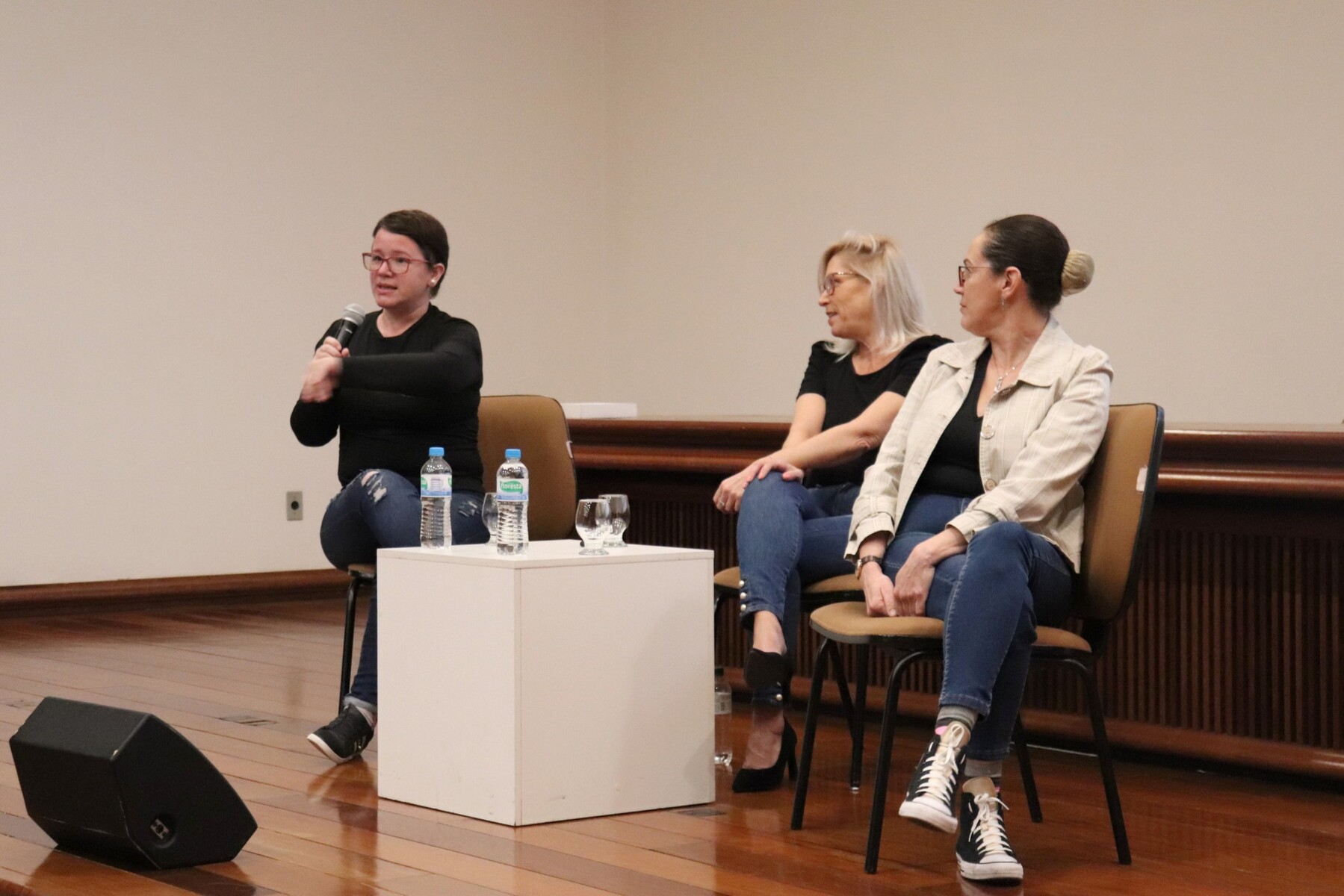 A primeira palestra da noite foi responsabilidade de Liana. Com muitas histórias para contar, a nutricionista apresentou ao público a importância da comunicação não-violenta nas relações de trabalho. Com exemplos do dia a dia, Liana garantiu a atenção de todos. Ao final, ela deixou uma mensagem de resiliência e coragem, incentivando todos a seguirem sonhos.