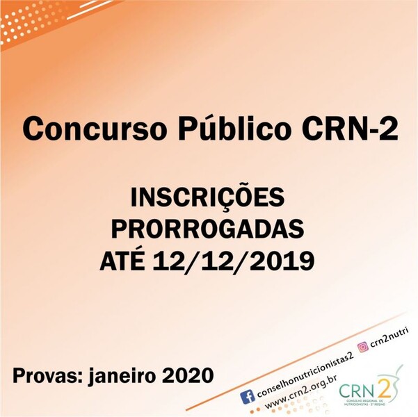 CRN-2 prorroga data para inscri??es ao concurso p?blico